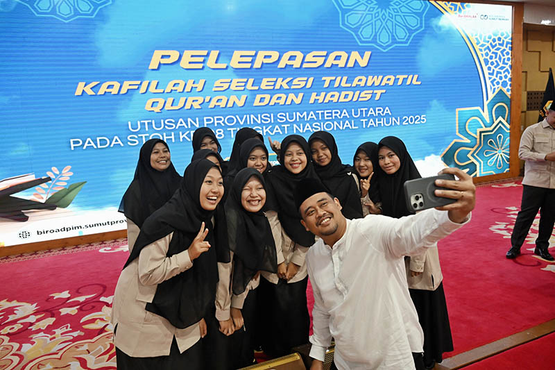 MEDAN – Gubernur Sumatera Utara (Sumut) Bobby Nasution secara resmi melepas keberangkatan Kafilah Sumut, yang akan bertanding di Seleksi Tilawatil Qur'an dan Hadits (STQH) ke-28 tingkat nasional di Kendari, Sulawesi Tenggara. Acara pelepasan berlangsung di Aula Tengku Rizal Nurdin, Jalan Sudirman No. 41 Medan, Selasa (7/10/2025) malam.